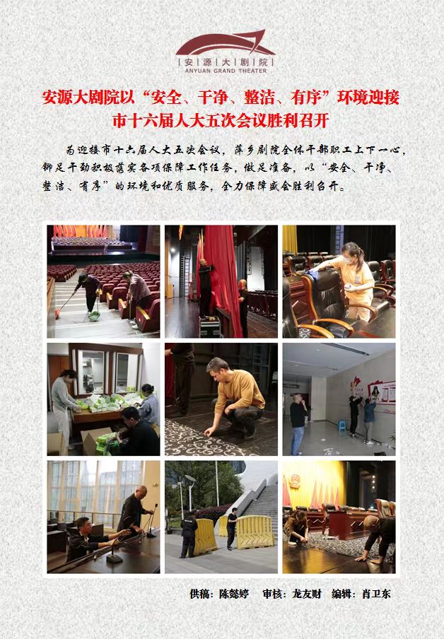安源大剧院以“安全,干净,整洁,有序”环境迎接市十六届人大五次会议胜利召开